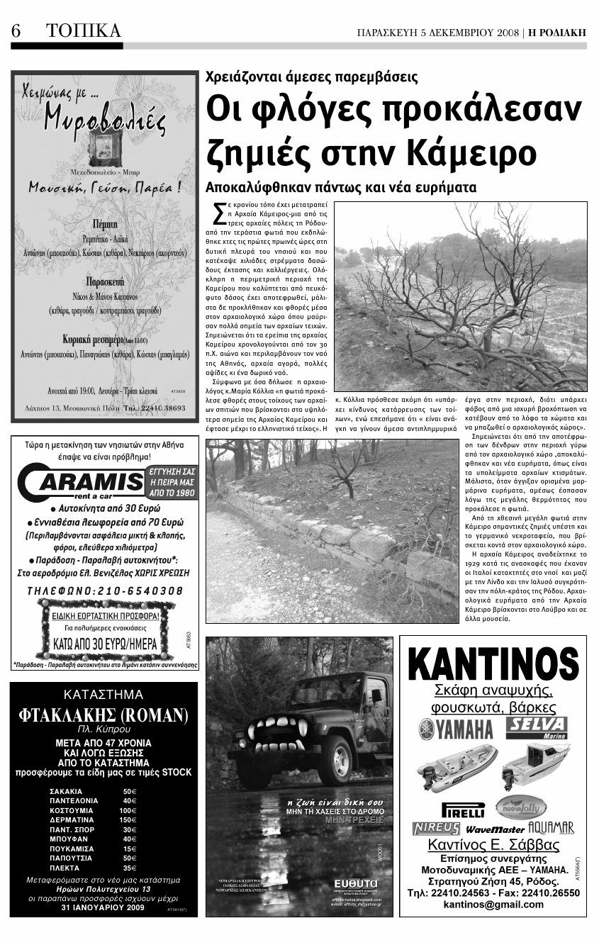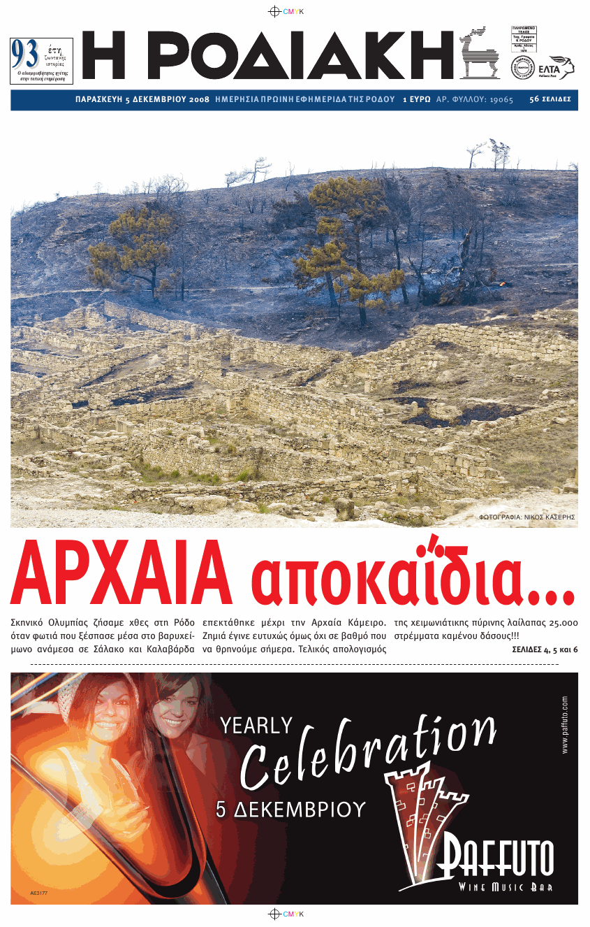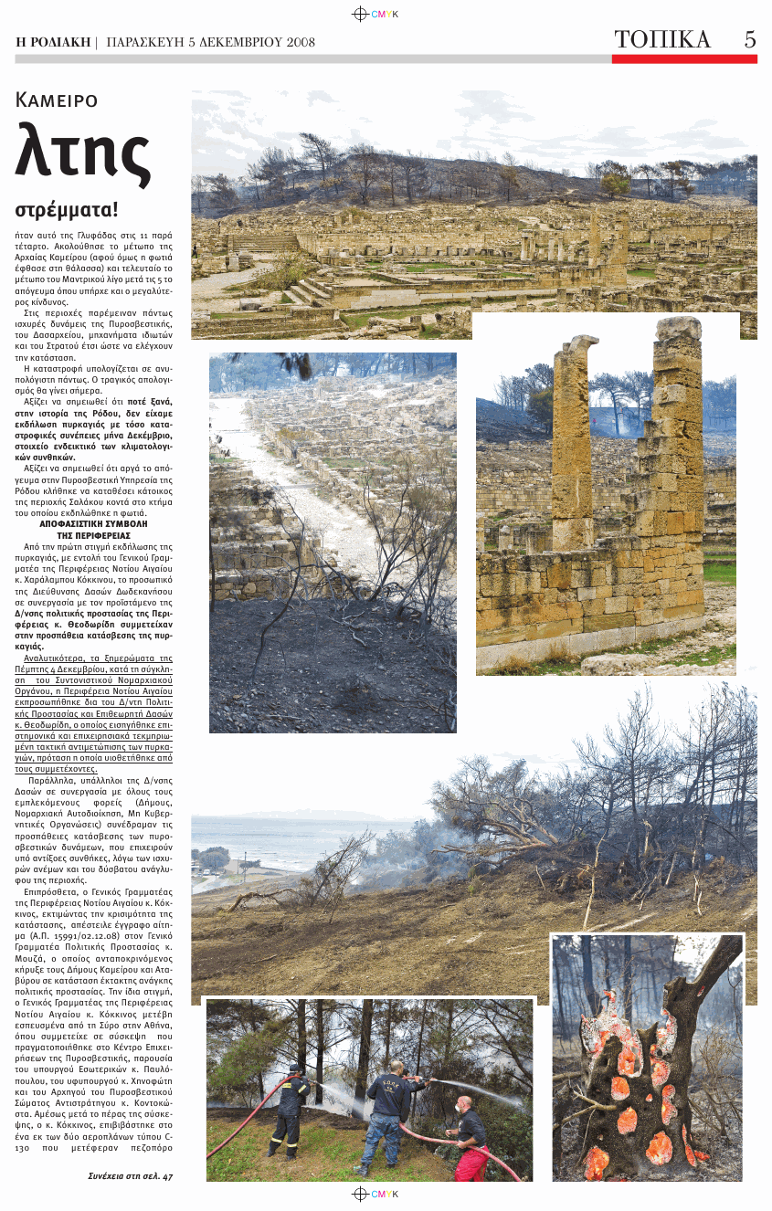 Kamiros gebrannt :-(. Die Berichte sind von der Zeitung auf Rhodos,